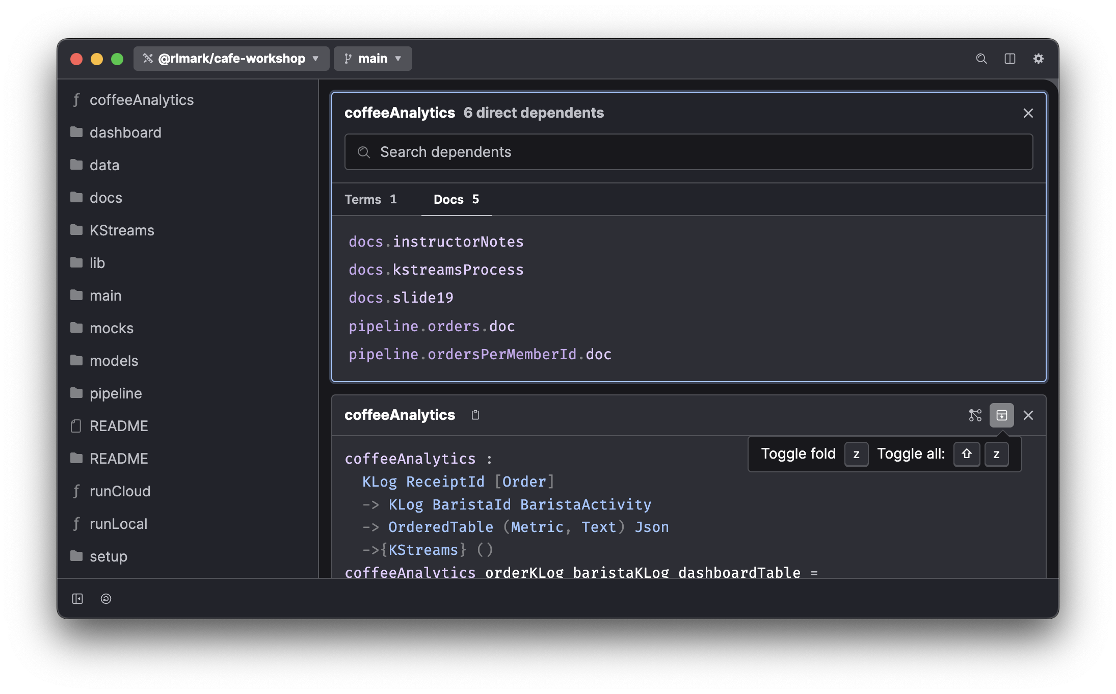 Since each Unison definition is stored by the hash of its abstract syntax tree, the codebase manager knows exactly how definitions relate to one another. Our new feature, the dependents view, makes this information directly visible.